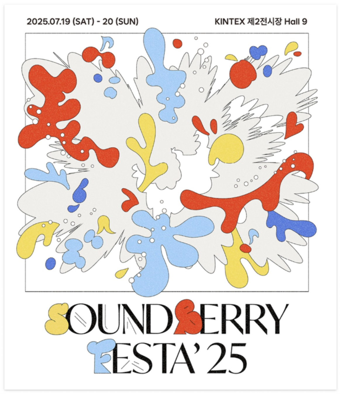 사운드베리 페스타 2025 (SOUNDBERRY FESTA' 25)는 2025년 7월 19일(토)과 20일(일), 양일간 경기도 고양시 일산 킨텍스 제2전시장 9홀에서 개최되는 대형 음악 페스티벌입니다. 다양한 장르의 아티스트들이 참여하여 관객들에게 풍성한 음악적 경험을 선사할 예정입니다.
